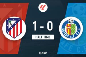 半场-马竞1-0赫塔菲 莫利纳超级世界波闪击瑟尔洛特头球中柱